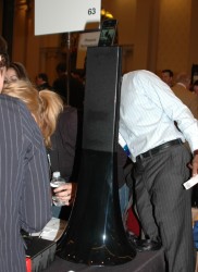 Sharper Image社は、iPodドック搭載のアクティブスピーカーを多数展示している。スピーカー部と本体部で構成されるオーディオシステム「EC-W145」は、150フィート(約45m)の距離まで伝送可能なワイヤレス技術を採用しており、本体から離して2chスピーカーとしても使用できる。
