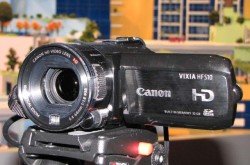 キヤノンは昨年登場させた『ダブルメモリー』+『24Mbps記録』を踏襲したニューモデルを発表した。その中で上位モデルとして新登場したのが「HF Sシリーズ」の2モデルで、大型レンズを搭載しながら、撮像素子には新規開発の1/2.6インチ、8.9MピクセルのCMOSを採用。レンズ部分のデザイン面からも“撮る気”にさせる新シリーズとなり、ここにはカメラメーカーらしいこだわりを感じさせる。また、キヤノンも遅ればせながら顔認識機能に対応。これで人物を撮るときの露出面での対応が可能となった。HFシリーズ後継機としては、「HF20」「HF200」が登場した。HF20が内蔵メモリ32GBで、HF200が同スペックで内蔵メモリなしモデルとなる。レンズ倍率を光学15倍にまで拡大し、ボディをいっそうスリムにしたのが大きなポイントだ。