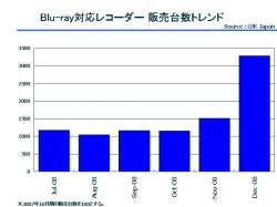 本件は市場調査会社GfK Japanによる調査で明らかになったもの。それぞれ対前月比で、BDレコーダーは117%、メディアは100%と倍増以上となったほか、ソフトが37%、BD対応パソコンが33%の増加といずれも数字を伸ばしている。