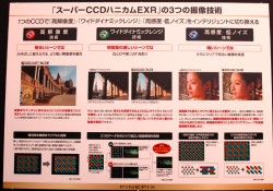 この新CCDの特徴を活かすため、本機には3つの撮像方式がシーンに応じて自動で切り替わる「EXR AUTO」機能と、ユーザーが録りたいイメージに応じて設定できる「EXR優先モード」という2種類の切り替えモードを搭載している。