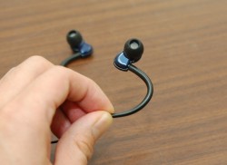 ダークブルーのハウジング部にブランドの「nu」ロゴをプリント。ループ掛けで装着するスタイルとしており、ハウジングから伸びるイヤーハンガー部はユーザーの耳にフィットするよう折り曲げて固定できるエルゴノミックデザインを採用する。左右同一長のケーブルは、全体の長さが1.3m。ケーブルを衣服に止められるよう、クリップも装着されている。