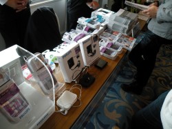 同製品は、小型軽量かつワイヤレスで高音質という従来からの特徴を引き継ぎながら、アップル社からのライセンスを正式に受けたiPod用の機種。ブースに訪れ試聴していたユーザーからも同社説明員へ熱い質問が寄せられるなど注目を集めていた