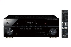 【SPEC】●定格出力:160W×5ch(1kHz、10%、6Ω) ●ライン入力S/N比:98dB (IHF-A) ●音声入力端子:同軸1、光2、オーディオ3、オーディオ(AV系):4、マルチチャンネル:5.1ch ●映像入力端子:コンポジット4、コンポーネント2 ●その他端子:HDMI入力3出力1、USB1、IR入出力1、マルチゾーン端子1 ●音声出力端子:オーディオ1、オーディオ(AV系)1、プリアウト…サブウーファー、サラウンドバックL/R ●映像出力端子:コンポジット1、コンポーネント1 ●消費電力:265W ●外形寸法:420W×347.7H×158Dmm ●質量:9kg