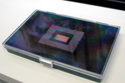 ただ現在試作段階ということで、実際に目にすると何の色も映っていない黒いドットが散見され、画質についてはまだ詰めが必要だと感じた。これは画素のなかにあるTFT(薄膜トランジスタ)を均一に駆動させるのが難しいためだという。説明員は「画質面での向上に加え、大画面化も図っていきたい」と語っていた。