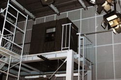 これは、さっぽろテレビ塔に設置したSHVカメラと22.2chマイクで収録した映像と、予め収録しておいたSHV2番組、計3チャンネルを衛星「きずな(WINDS)」に伝送。これを、新開発の300MHz広帯域変復調器を通して復調し、NHK放送技術研究所で受信・再生するというもの。