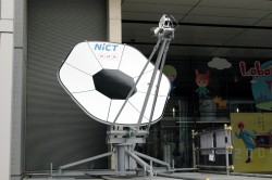 今回の目玉はなんと言っても超高速インターネット衛星「きずな(WINDS)」を使用した、札幌とNICT鹿島宇宙技術センター(茨城県鹿島市)、NHK放送技研を結んだスーパーハイビジョン(SHV)多チャンネル・生中継伝送実験だ。