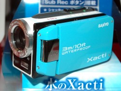 本製品は、IPX8相当の3m防水に対応したデジタルビデオカメラ。“Xacti”の5周年記念モデルとして、1万台限定で販売される。三洋電機のコーポレートビジョンである「Think GAIA」の下に「水」をテーマにした機種で、“水のXacti”として本体色にブルーを採用したほか、各種プロモーションも「水」をテーマに展開していく。