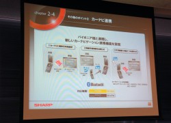 その他、携帯電話単体での商品展開だけでなく、BDレコーダーやカーナビゲーションシステムとのシステム連携についてもデモを交えて紹介された。