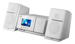 ●実用最大出力:15W+15W ●端子:アナログ音声入力×1、ヘッドホン出力×1 USB×1 ●チューナー:FM/AM ●メモリー容量:512MB(フォト用) ●消費電力:25WW ●外形寸法:センター部→275W×139H×214.4Dmm、スピーカー部→143W×225H×209Dmm ●質量:センター部→2.4Kg、スピーカー部→/1.5Kg