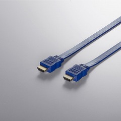 本製品は、Ver.1.3対応のフラット型HDMIケーブル。1080p信号およびDeep Color、x.v.Colorに対応している。ブルー/グレー/グリーン/レッドの4色を用意しており、ブルーが「BL」、グレーが「GL」、グリーンが「GR」、レッドが「RD」という文字がそれぞれ型番の末尾に加わる。