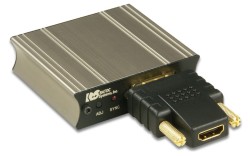 本機はVGAコネクタを搭載したPCに、DVIもしくはHDMI端子を搭載したモニターを接続するための変換アダプター。2008年6月末に発売したREX-VGA2DVIと本体の仕様はほぼ共通で、USBバスパワーケーブルを添付したのが変更点。最大1,920×1,200ピクセルの映像入出力に対応。HDMI接続時には、1,920×1,080p、1,280×720pの映像も変換して出力することが可能だ。