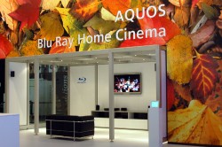 プレスカンファレンスレポートでもお伝えしたとおり、シャープのブースは新モデル“フルLEDテレビ”一色。至るところに本機が置かれ、消費電力や画質モード比較などが行われている。