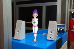 会場では携帯電話からコンテンツを出力して本機で投写するデモも行っている。専用モバイルスクリーン「MFS-20」の性能も確認することが可能だ。
