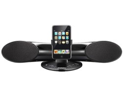 アンプの実用最大出力は2.5W+2.5W。消費電力は10W。対応iPodはiPod touch(第1〜第3世代)/iPod classic(第6・第7世代)/iPod video(第5世代)/iPod photo(第4世代)/iPod(第4世代)/iPod nano(第1〜第5世代)/iPod mini (第1・第2世代)。