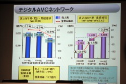 デジタルAVCネットワーク部門に含まれる、テレビの販売台数は6〜9月に36%増えたとのことで、これはエコポイント効果によるもの。大坪文雄社長は「エコポイントはセットメーカーだけがメリットを得るものではない。電機産業はある意味で、自動車産業よりもサポートインダストリーの裾野が広い。雇用の維持、安定といったメリットや、CO2の圧縮にも効果があるので、ぜひ継続して欲しいと関係省庁に粘り強くお願いしている」と述べた。