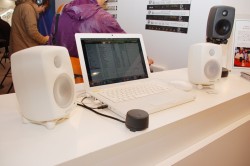 オタリテックのブースには、同社が取り扱うGENELECブランドの新スピーカー「8260A」が出展されたほか、デスクトップで楽しめるコンパクトサイズの「6010A」などにも注目が集まっている。