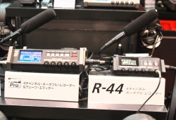 ローランドブースでは、ポータブルレコーダーに注目したい。2ch用「R-09HR」は24bit/96kHzのリニアPCM、MP3形式での録音が可能。4ch用では80GBのHDD内蔵タイプ「R-4 PRO」と40GBのHDD内蔵タイプ「R-4」、そしてHDDを持たないSDカードタイプ「R-44」をラインナップ。「R-4Pro」は約1.3kgと軽量で、持ち運びに便利。4ch録音時は最大24bit/96kHz、2ch録音時は24bit/192kHzでの録音に対応する。電源はACアダプターのほかに単3電池4本でも連続4時間の使用が可能だ。