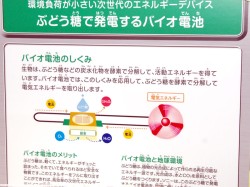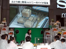 ”を駆動させたり、社会科見学などで多数来場している小学生などから希望者を募り、実際に果物からブドウ糖を取り出して電気を作る実験デモを大々的に行っている。