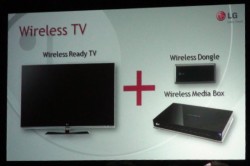 LGは、2010年に発表される同社のテレビラインナップのキーテクノロジーとして、ワイヤレス技術をテレビに積極的な導入する戦略を紹介。小型でワイヤレスの製品、セパレートで高速コントロールに対応したワイヤレス製品が今後伸びるという予測を示した。後に挙げる製品ラインナップでも、WirelessHDと無線LANアダプタのオプション対応という形で提供される。さらに、先に発表された、Skypeを利用したテレビ電話のデモも披露された。