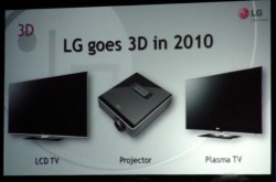 3D対応については、2010年は液晶テレビ、プロジェクター、PDPといった全体像のみを発表した。先に挙げた液晶、プラズマの機能のほか、LCOS系デバイスを使ったフルHDプロジェクターについてもスペックが公開された。デバイスとしてLCOSを2枚使いながら1眼で投写するもので、フルHD解像度で2500lmの明るさ、7,000対1のコントラスト、3D調整機能を備えている。