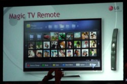 液晶テレビのフラッグシップLH9500はベゼル8.5mm、厚さ24.8mmのLEDバックライト搭載テレビで、3D表示にも対応。240Hz駆動相当の技術を搭載し、LEDバックライトは240分割(ピクセル補完による)のエリア駆動技術までも備える。簡単な動きでコントロールできる「magic wand」(魔法の杖という意味)というリモコンのようなデバイスを使った操作に対応している。DLNAクライアント機能も搭載されているほか、先に挙げたWirelessHD、無線LANのオプションも追加可能だ。