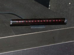 今回の同社ブースの大きなフィーチャーは、やはり3D。ブース中央に「3D World Created by Sony」と題した体験コーナーを大きく設置していることに加え、外付けのトランスミッターを取り付けて3Dに対応させた24.5インチの有機ELテレビも参考出展している。