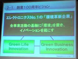 最後に大坪氏は、パナソニックの2010年の経営スローガン「Unite Our Efforts - Drive Eco Innovation 力を一つに、環境革新」を発表。このスローガンのもと、全社員一丸となって頑張っていきたいと述べた。