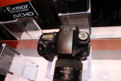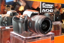 一方の一眼レフの方は、デザイン的にもしっかりとしたもので、モックアップとはいえ、このまま登場してもおかしくないと思えるような仕上がりだった。こちらもExmor APS HD CMOSセンサーを搭載し、AVCHDによるフルHD動画対応としている。メインストリーム機と、「アドバンス」と呼ばれる中級機の2ラインナップ構成で、動画専用レンズの開発も考えているという。