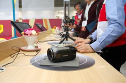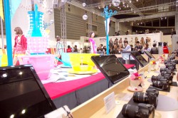 キヤノンブースでは2月26日から販売開始した24p動画撮影可能なデジタル一眼レフカメラ「EOS Kiss X4」をはじめ、「EOS 5D Mark II」や「IXY 10S」、そしてムービーカメラの新モデル「HF S21」「HF R10」「HF M31」など多彩なラインナップを試用することができる。あす3月12日に発売となる「HF S21」について同社説明員は「今日実際に触っていただいたユーザーの方々には虹彩絞りの美しいボケ味や多彩なマニュアル機能、タッチパネルでの簡単な操作が好評を博している」とコメントしていた。