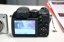 ジェネラル・イメージング・ジャパンのブースでは、近日発売予定のレンズ一体型デジタルカメラ「GE-X5」に注目だ。有効1,410万画素・広角27mmで光学15倍ズームを搭載。白飛びや黒つぶれを補正するHDR機能や、顔を検出して自動的に最適な露出に調整する「新Face AE」機能を備えている。ボディも非常にコンパクトで、女性の手のひらにすっぽり収まるサイズ。「GE初のブリッジ一眼カメラ。コンパクトで持ち運びやすい、女性を意識したモデルとなっている」(同社説明員)