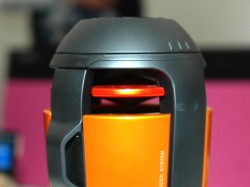 本体はタンブラーのような形状で、カラーはブラックとオレンジの2色を用意。UV塗装でキズが付きにくいという。