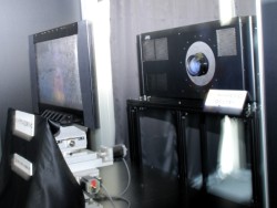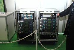 NHK技術研究所は2020年にSHV試験放送を実施することを目標に掲げている。SHV放送を実現するための技術として、SHV放送の大容量の映像信号を圧縮する符号化技術は昨年も展示されていたが、今年の符号化装置はサイズが昨年の約2分の1までスリム化を果たした。スリム化の要因としては、符号化処理が30Pから60Pへ進化し、これまで30Pを処理するHDTV用符号化ユニットを16台搭載していたところを60P処理が可能な符号化ユニット8台構成へと変更したことが挙げられる。