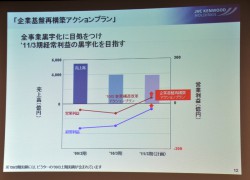 これらの中期経営計画に基づいて事業を実行することにより、河原氏は「11年3月に経常利益の黒字化を、12年3月に当期純利益の黒字化を実現したい」との中期目標を語った。また13年3月期には売上高で4,500億円、営業利益で145億円、当期純利益で45億円の目標数値が示された。そのほか、中期経営計画期間中の配当開始を目指す方針も発表された。