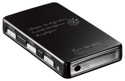 USB-DAC機能搭載の小型ポータブルヘッドホンアンプ。本機もアンプ部は対称性の高い回路デザインを採用。ウォルフソン製DAC「WM8740」を搭載しているほか、高出力オペアンプをバッファーとして2台内蔵するなど厳選した部品を採用している。本機も電源はリチウムポリマー充電池で、1度の充電(約3時間)で最大38時間の長時間連続駆動が可能だ。