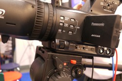 パナソニックのブースでは、世界初の一体型二眼式3Dカメラ「AG-3DA1」など、業務用3D撮影システムが展示されている。