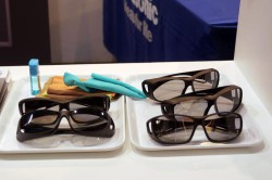 シャープは、“AQUOS クアトロン 3D”LV3シリーズを使った3D映像再生を行い、注目を集めていた。“クアトロン”は、RGB+Yの4つのサブピクセルを持つ4原色パネルとUV2Aパネル、LEDバックライトを採用することで、2Dと同等の明るい3D映像を実現できるのが特徴だ。「3D→2D」変換機能も備えた3Dメガネが付属するのも特徴。家族で3D映像を見ている際にも、2D映像を見たい人はボタンを押すだけで切替が可能なので、3D視聴時における安全性も確保できる。メガネにはシルバー/ブルー/レッドのカラーバリエーションが用意されている。