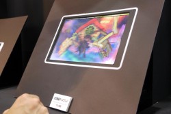 また、裸眼で立体視が行え、2D/3Dの表示切り替えが可能なタッチパネル付きの3D液晶ディスプレイも展示。こちらは4月に発表されたもので、今回は10.6型と3.8型が用意されていた。デジカメや携帯電話などのモバイル機器向けの使用が想定されている。
