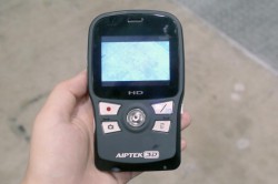 レッツコーポレーションは、8月から販売開始するポータブル3Dビデオカメラ「AIPTEK3D」を展示している。