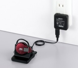 付属の充電用スタンドに本体を置き、ACアダプターでコンセントにつなぐか、USB端子でPCなどからバスパワーで給電することで充電を行うことができる。
