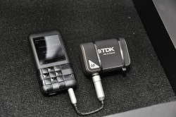 イベントに出展されている注目のモデルは、TDK Life on Recordから今春に発売された高音質ワイヤレス伝送技術“Kleer”を搭載したヘッドホン「TH-WR700」(関連ニュース)だ。本機は2.4GHz帯を用いて44.1kHz/16bitの音声データを劣化なしに伝送できる「Kleer(クリアー)」技術を採用しており、ワイヤレスながらBluetoothに比べ、より高音質な音楽再生を実現している。コンパクトなワイヤレストランスミッターを採用しており、ステレオミニプラグ経由でiPodをはじめ様々なポータブルオーディオ機器につないでワイヤレスリスニングが楽しめる点も特徴だ。