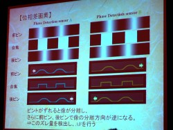 その上で、両方式の“良いとこ取り”のAFシステムが理想的なAFシステムであるとコメント。明るい被写体の場合には位相差AF、低照度のときにはコントラストAFを働かせる同製品の特徴をアピールした。