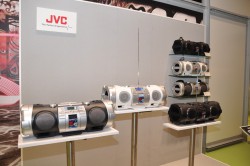 ビクター・JVCの出展するブースには、振動板素材に“木”を採用した“ウッドコーンスピーカー”のiPhone/iPodドック搭載機「EX-S1」などが出展された。