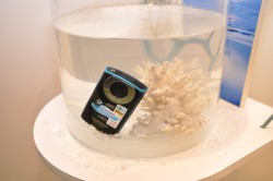 日本国内でも8月下旬に発表された、フルHD対応のモバイルムービー“PICSIO”「CG-WP10」「CG-FM2」(関連ニュース)のハンズオンが人気を集めている。欧州では一般コンシューマーが参加できる大型イベントでは初めて展示される機会となったこともあって、製品を手にとって撮影を楽しむ人だかりができていた。