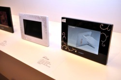 デジタルフォトフレームにもユニークな機能を搭載した新製品が出展されている。「DPF-D830」は外出時に携行できるよう、DC電源駆動にも対応したフォトフレーム。タブレット端末の感覚で、デジタル写真を持ち歩いて楽しむことができる。画面サイズは8インチ。