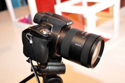 レンズ交換式ビデオカメラ「NEX-VG10」や、レンズ交換式デジタルカメラ“α”「NEX-5」「NEX-3」、またAマウント対応の新製品“α55/α33”などのデジタルイメージング製品もヨーロッパで発売される。ドイツはもともと“α”シリーズの人気が高いこともあり、会場のタッチ&トライコーナーは常時賑わいを見せている。
