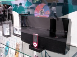パイオニアブースを訪れた。Blu-ray 3D再生に対応した新BDプレーヤーも初展示されたが、展示の力点はそこにはなく、どちらかといえばiPod/iPhoneによるコントロール機能の優位性を訴求する解説員の方が多い。