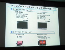 テレビやAVパソコンにおける「ひかりTV」サービスの対応状況については、現在東芝“REGZA”の35機種、シャープ“AQUOS”の48機種が対応している。パソコンについてはNECの“VALUSTAR”シリーズや東芝の“dynabook/Qosmioシリーズ”に対応機種が登場している。
