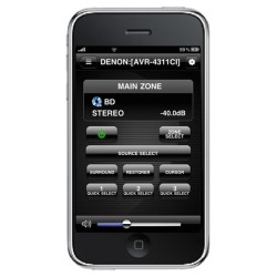 さらに、デノンではiPhone/iPod touch用アプリとして「Denon Remote App」を開発し、App Storeから無償でダウンロード提供を開始する。本アプリをインストールして、iPhone/iPod touchでデノンの機器がLANを経由によりコントロール可能になる。アプリはシンプルなインターフェースを採用し、アンプの電源ON/OFFやボリュームコントロール、ソースの切り替えなどが行える。またファイルストリーミングやインターネットラジオの操作も対応しており、iPhone/iPod touchにはアルバムアートワークも表示できる。アプリによるコントロールに対応するデノンのAVアンプは本機のほか、「AVR-3311」「AVR-A100」となる。