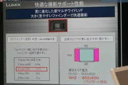 また、ファインダーのカラーブレークも改善。従来は「RRGGBB」の順で60Hz駆動していたが、GH2は、60Hz駆動自体は変わらないものの、「RGBRGB」の順で表示させることにより、色割れを2分の1に抑えたという。