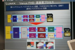 VenusエンジンFHDでは、デジタル処理を早い段階で行うことによりノイズを抑えることが可能。また新インテリジェントノイズリダクション回路「3次元DNR」「新CNR」を搭載することにより、色エッジの処理を大幅に改善し、色滲みを低減した。